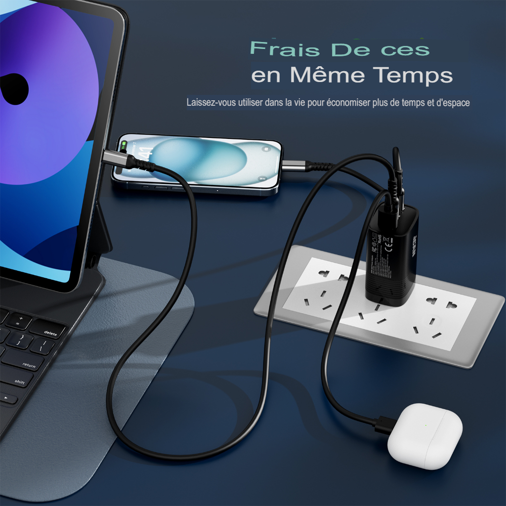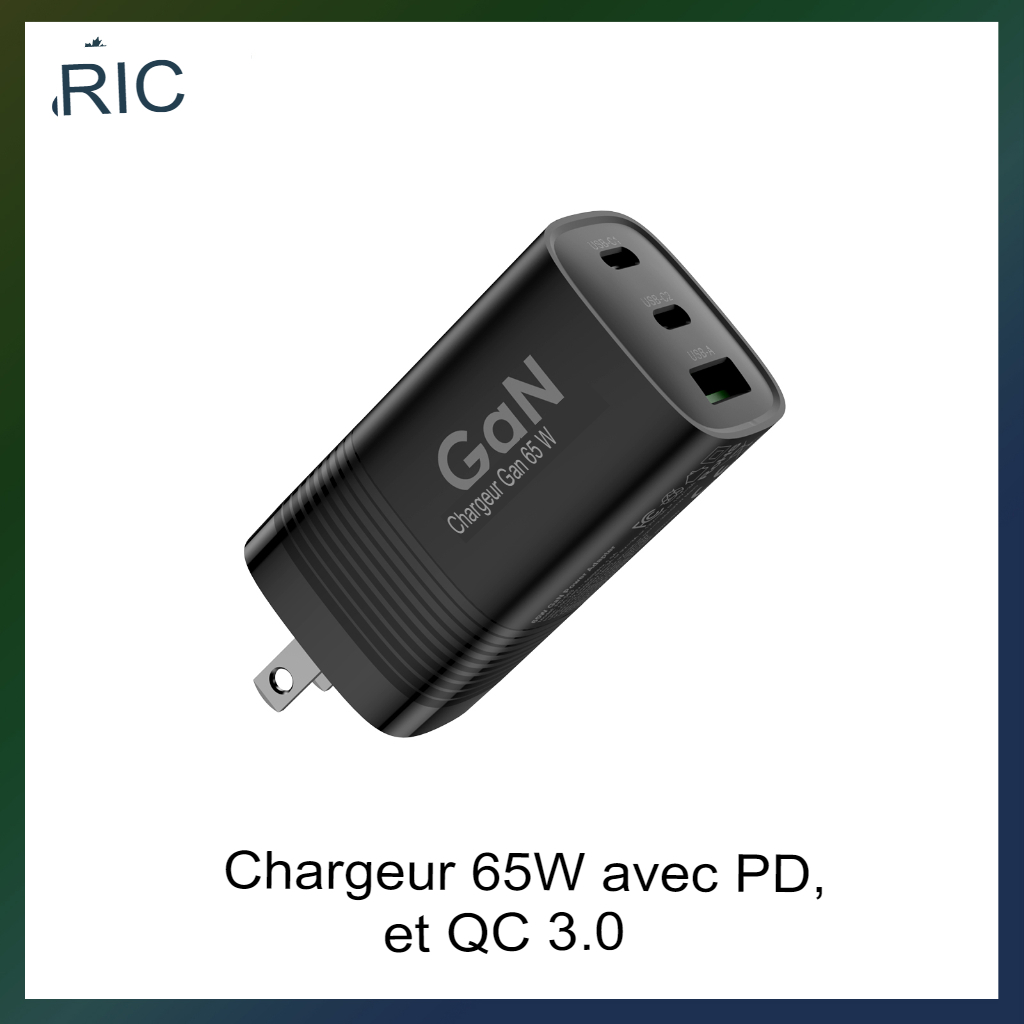 • iCAN Chargeur USB GaN PD 65W à 3 ports