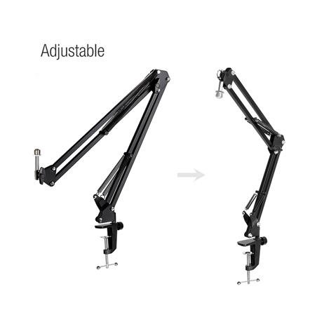 iCAN - Support de microphone de bureau à pince avec bras de suspension à ciseaux réglable, noir