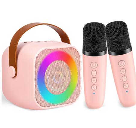 Mini machine de karaoké iCAN WPS18, enceinte Bluetooth portable avec 2 microphones sans fil et lumières de fête pour enfants et adultes, cadeau d'anniversaire pour filles et garçons, fête familiale à domicile