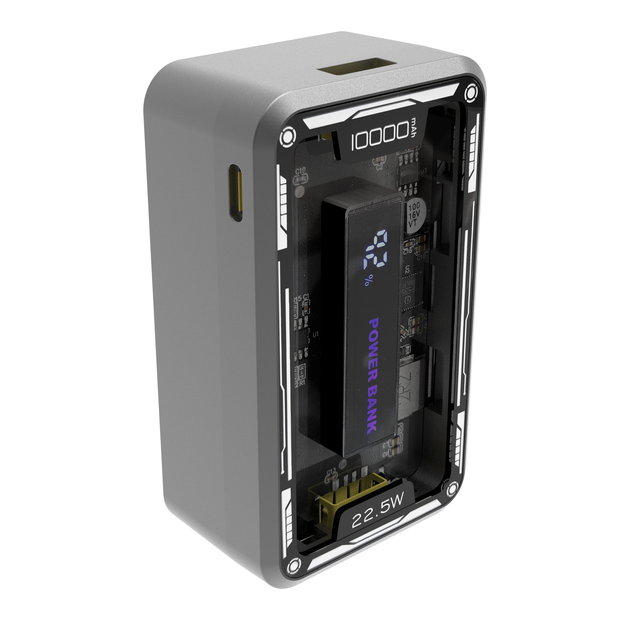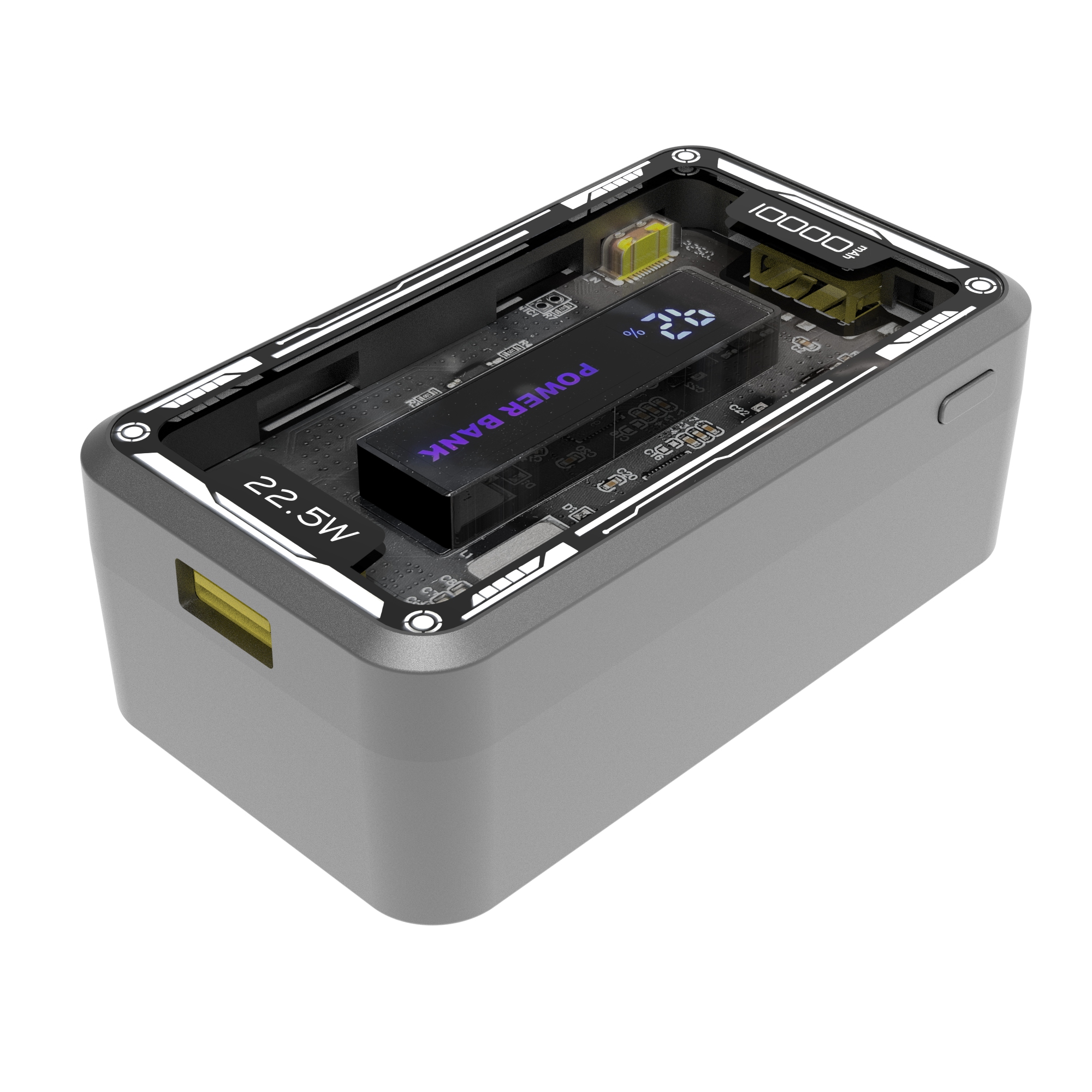 iCAN Power Bank Transparente Extrêmement Compacte de 10000mAh avec Charge Rapide de 22,5W, Gris