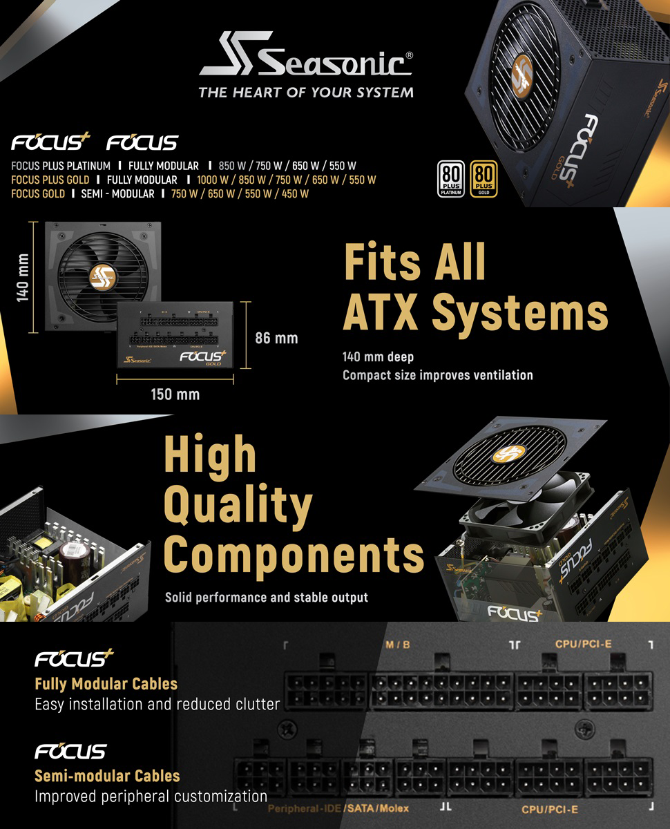 SEASONIC - Bloc d'alimentation de 550 W | certifié 80 PLUS Gold | Intel ATX 12 V 140 mm