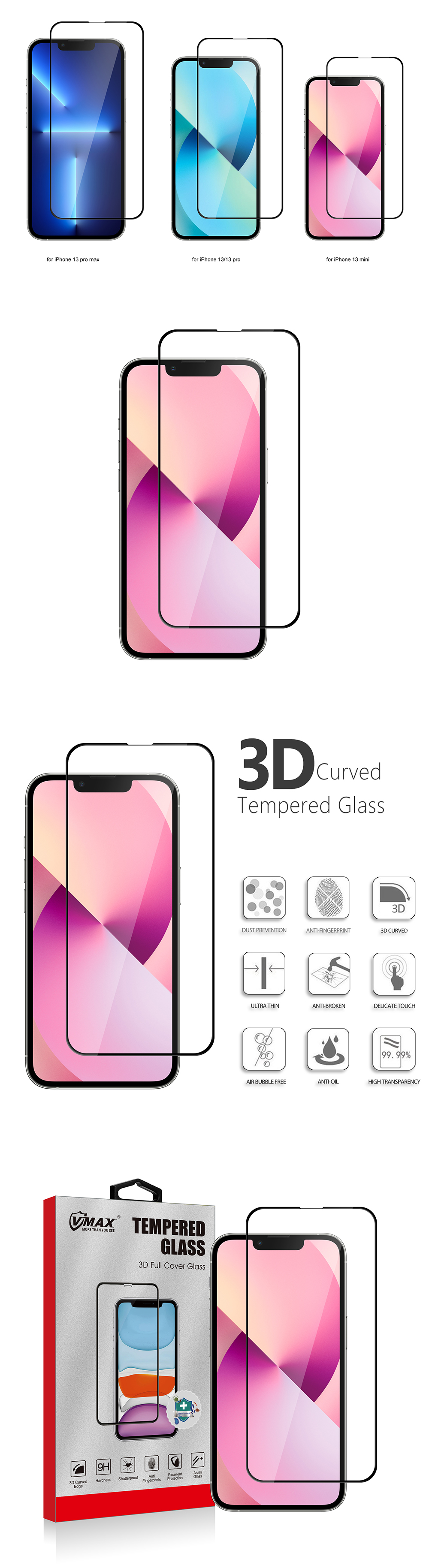 VMAX 3D  Protecteur d'écran en verre trempé Resin Full Cover pour iP13(Open Box)