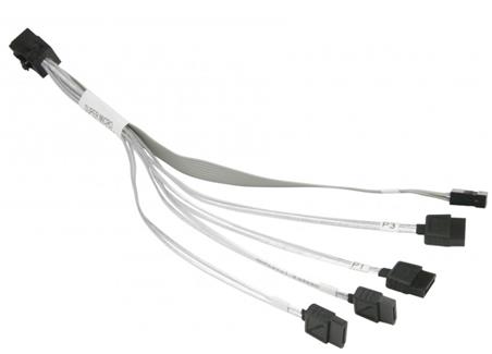 Câble de données Supermicro pour châssis de serveur sélectionné - MiniSAS HD SFF-8643 vers 4 SATA 20/20/20/20cm avec Sideban...