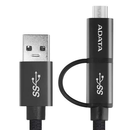 • Câble ADATA USB-C/Micro USB 3.1 2-en-1 de 3,28 pieds - Noir